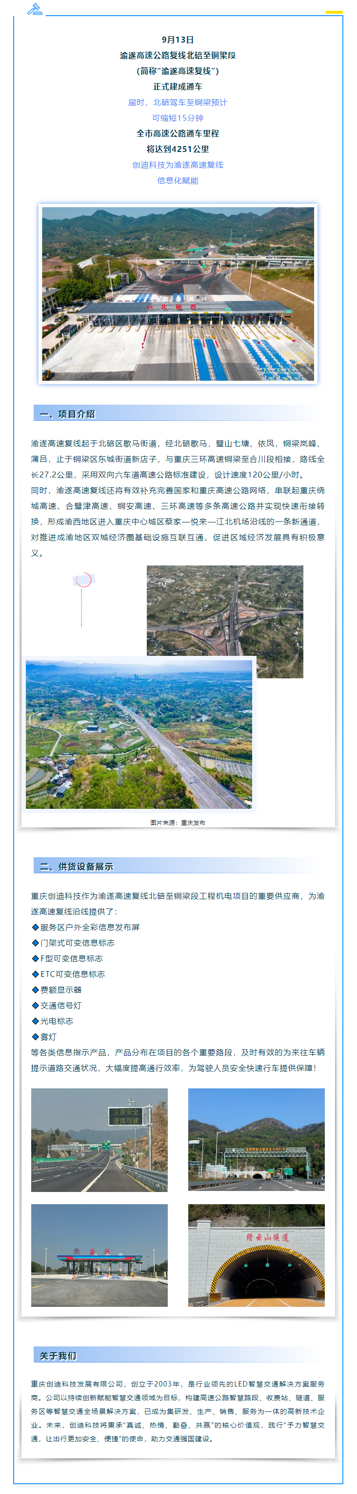 重慶創(chuàng)迪科技助力丨渝遂高速復(fù)線北碚至銅梁段項(xiàng)目建成通車!.